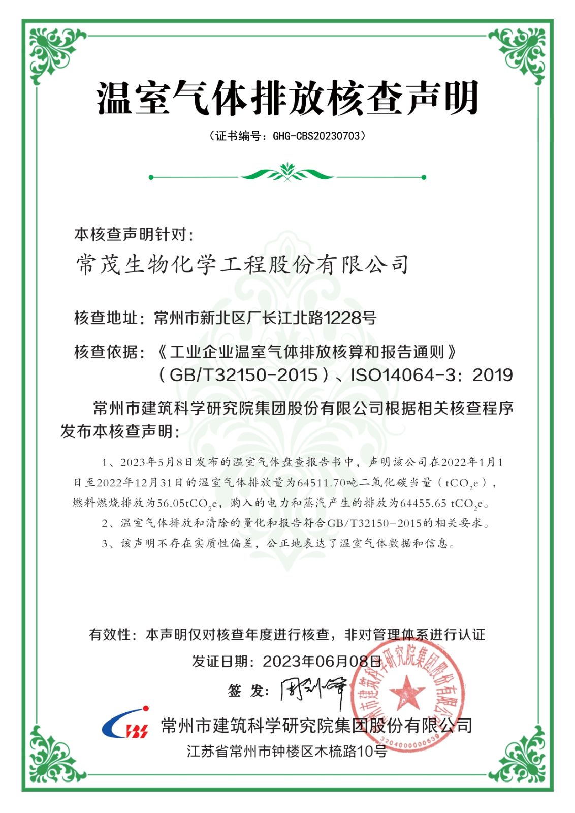 溫室氣體排放核查聲明